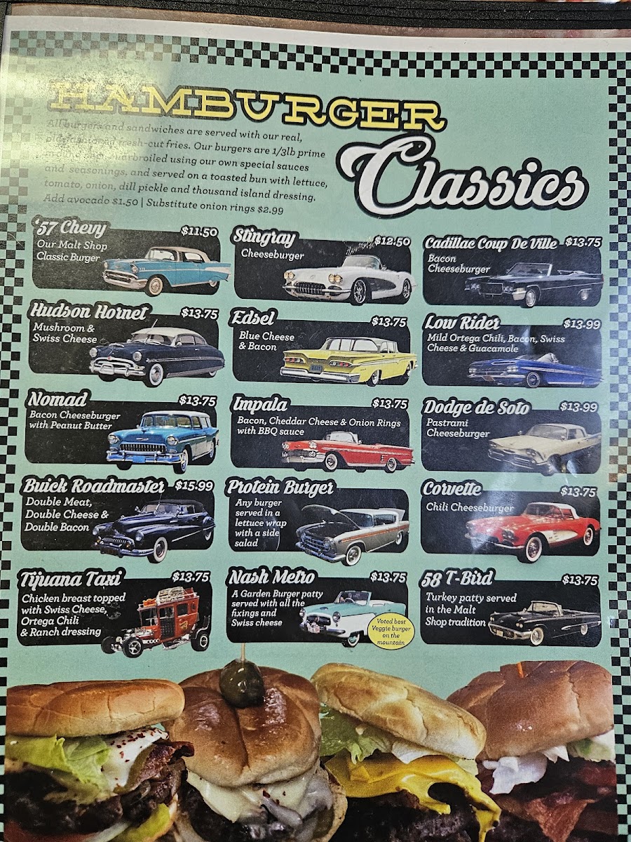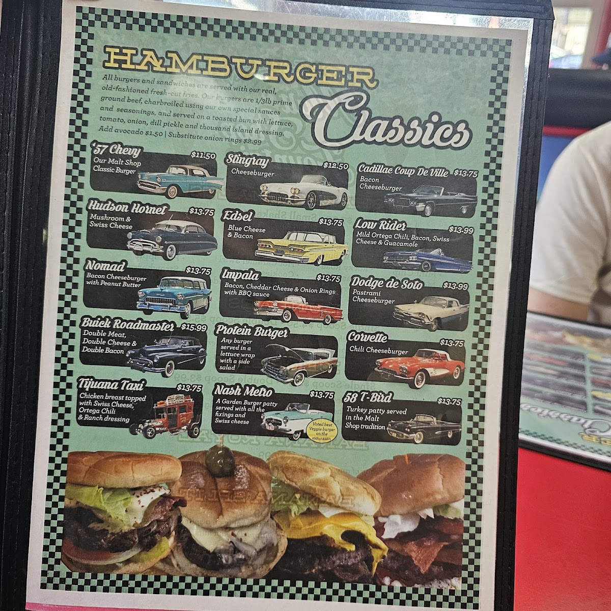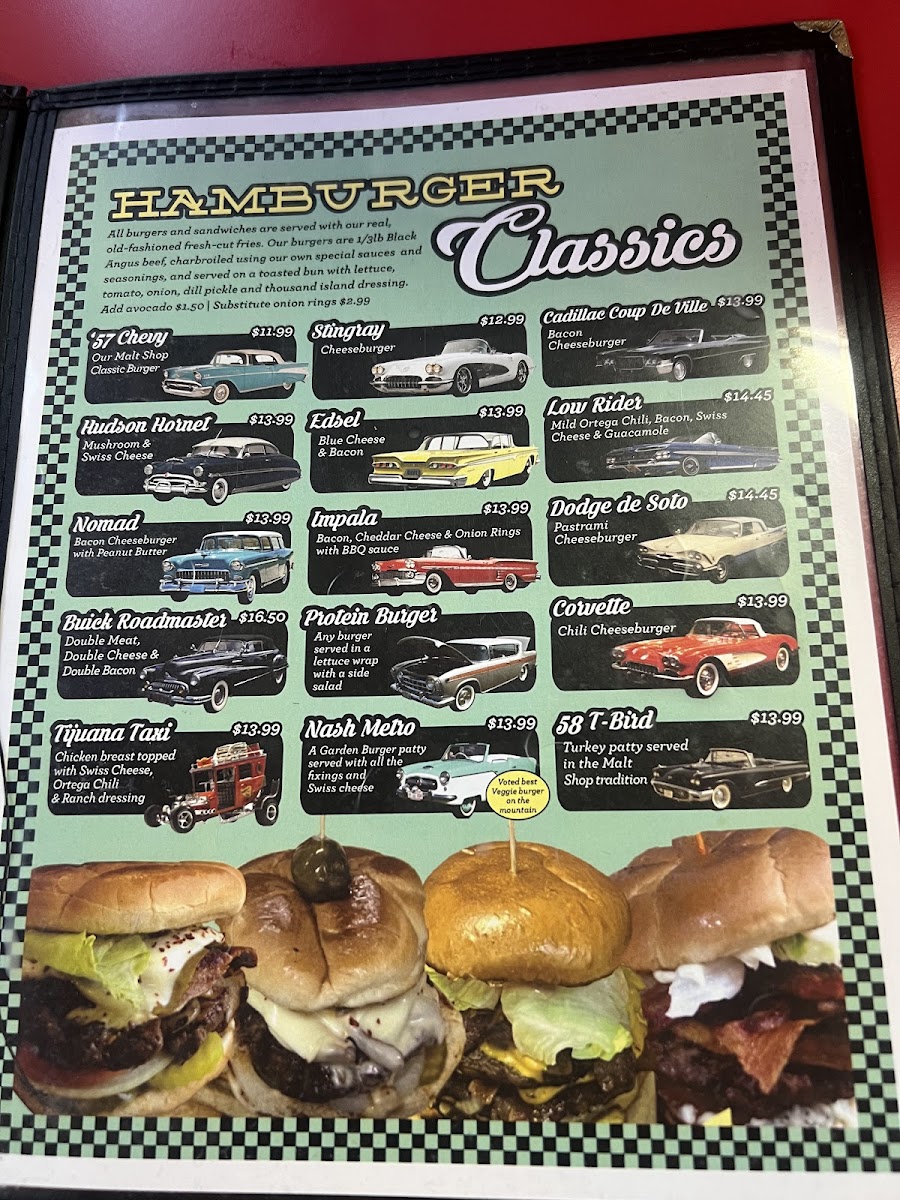 The moment you step inside, you’re greeted with the warm ambiance of an old-fashioned malt shop, where the walls are adorned with colorful vinyl 45s and 50s tunes play softly in the background, transporting you back to simpler times. The inviting and welcoming staff add to the charm, ensuring you feel right at home as you peruse the enticing menu.