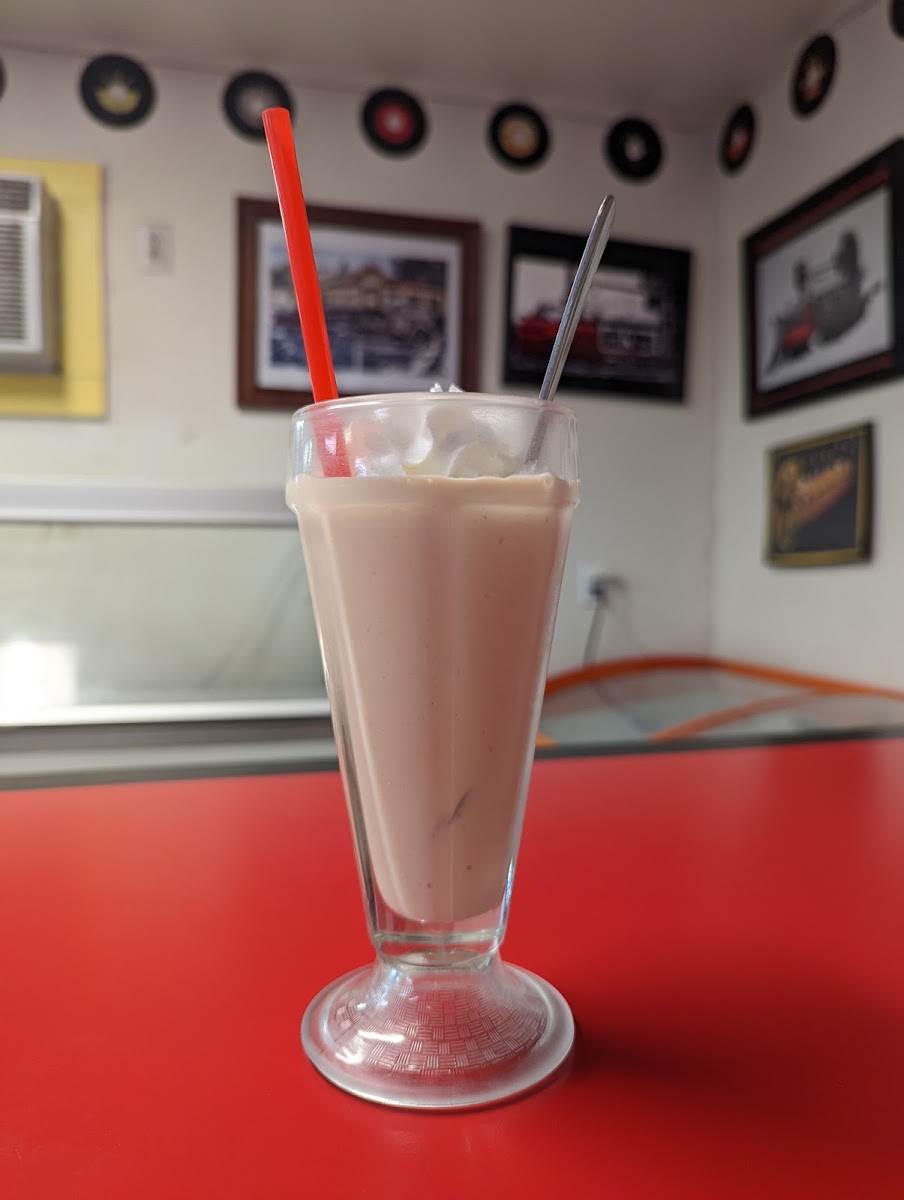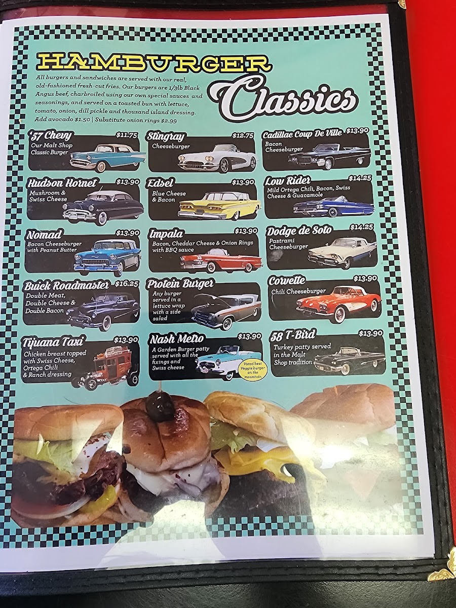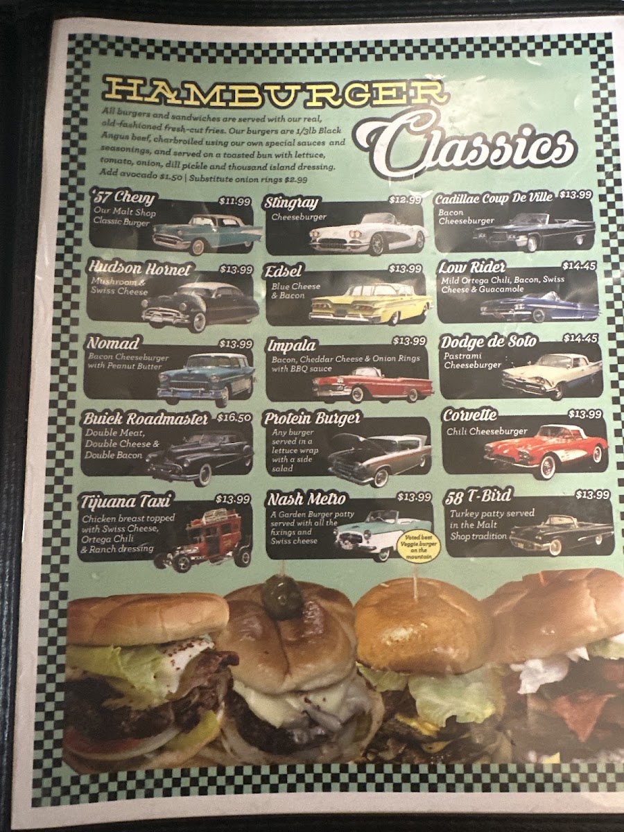 The moment you step inside, you’re greeted with the warm ambiance of an old-fashioned malt shop, where the walls are adorned with colorful vinyl 45s and 50s tunes play softly in the background, transporting you back to simpler times. The inviting and welcoming staff add to the charm, ensuring you feel right at home as you peruse the enticing menu.